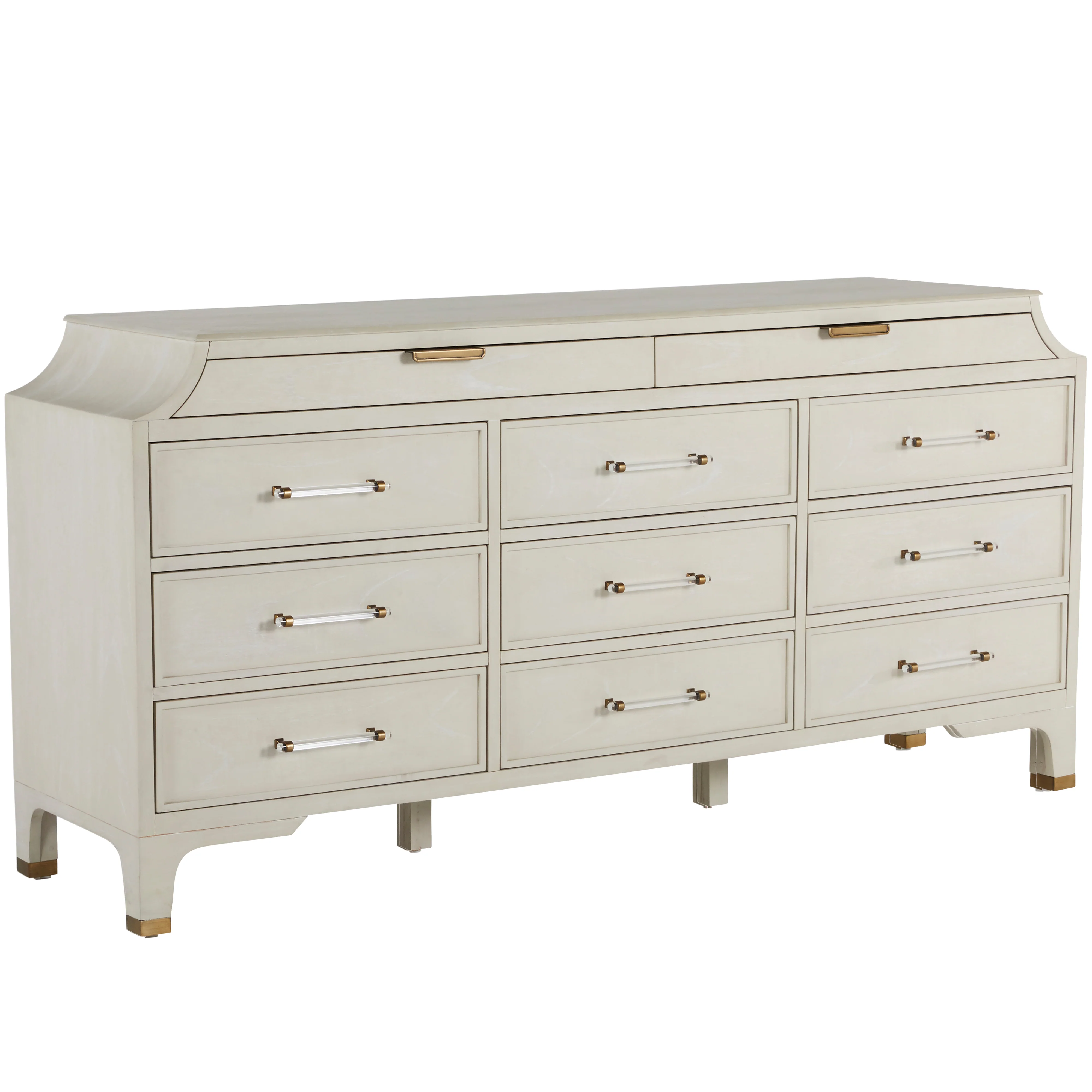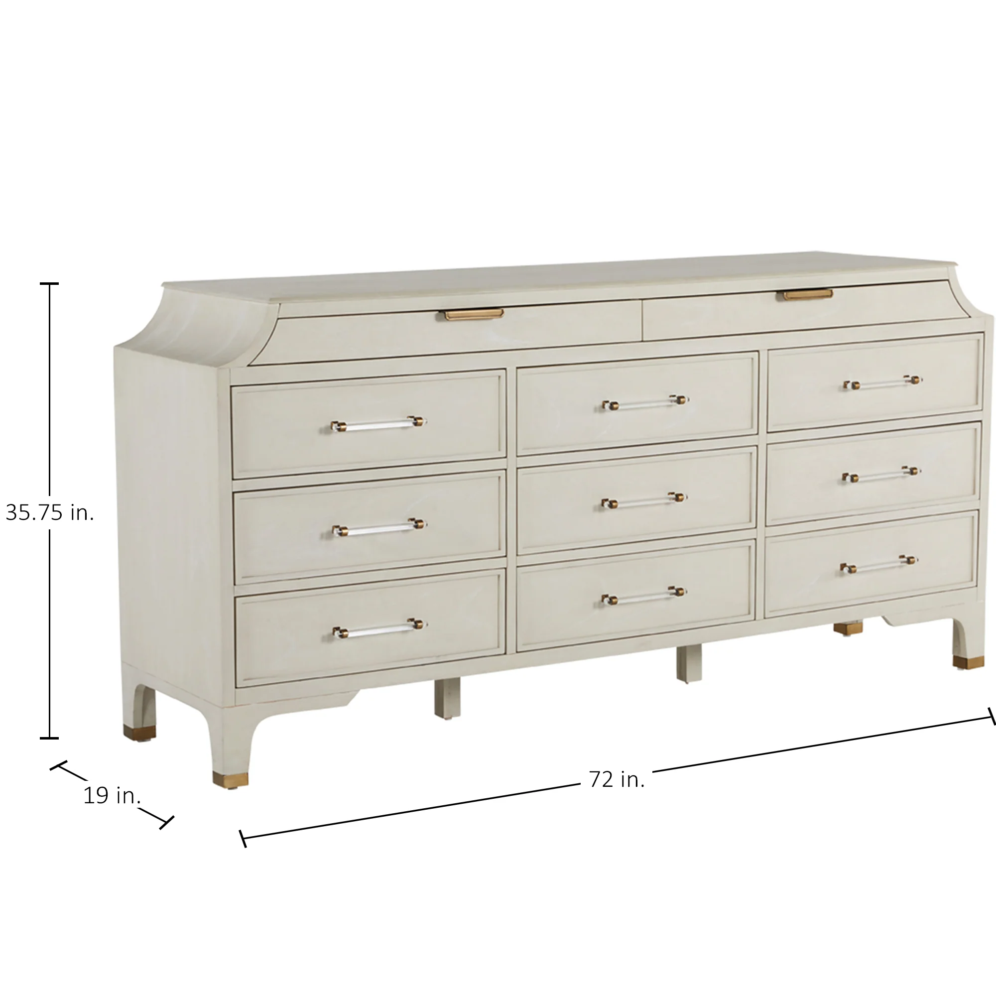 - Suite of nine capacious drawers offer generous storage for clothing, linens, and essentials