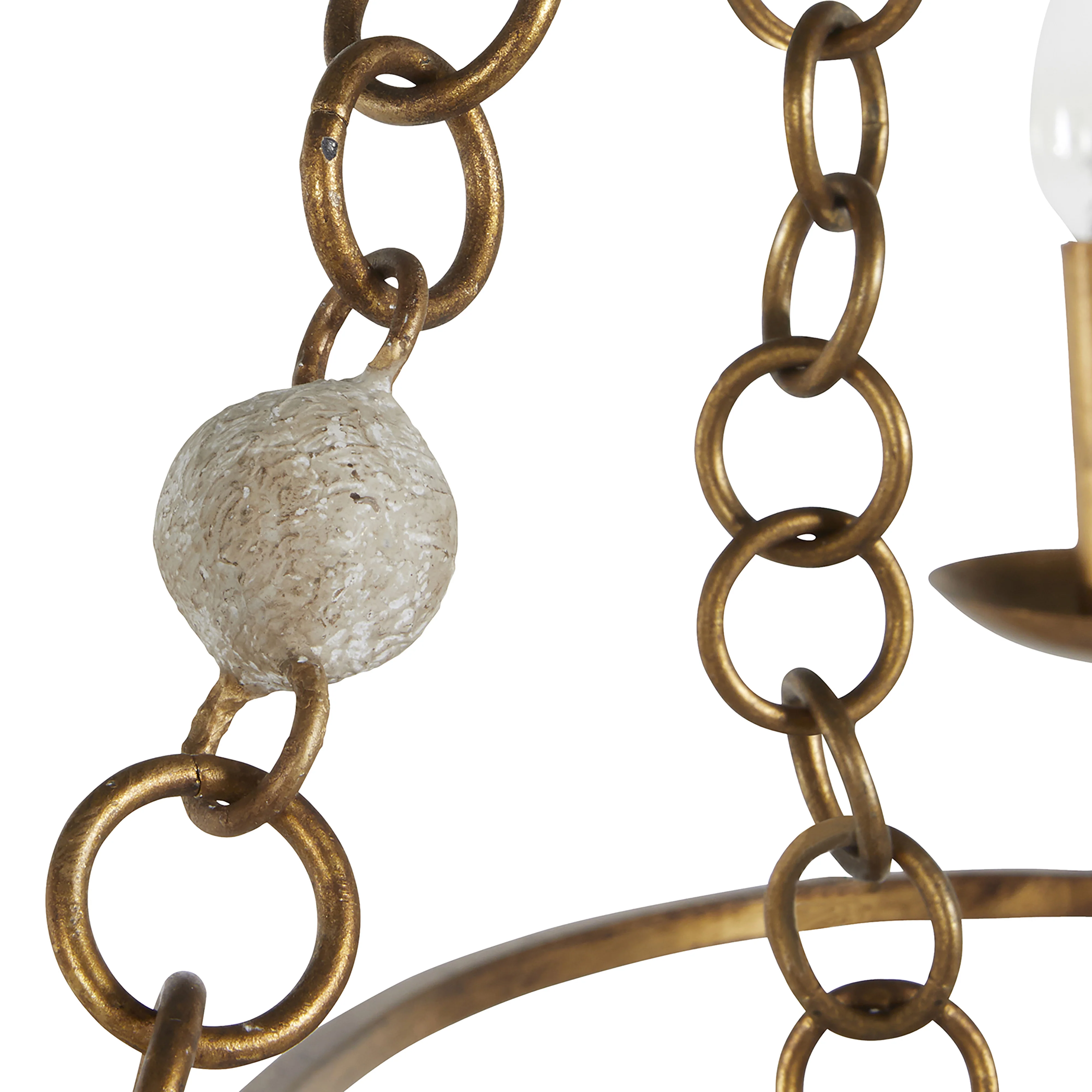 - Antique white bead accents add delicate texture and enhance the chandelier’s transitional design charm