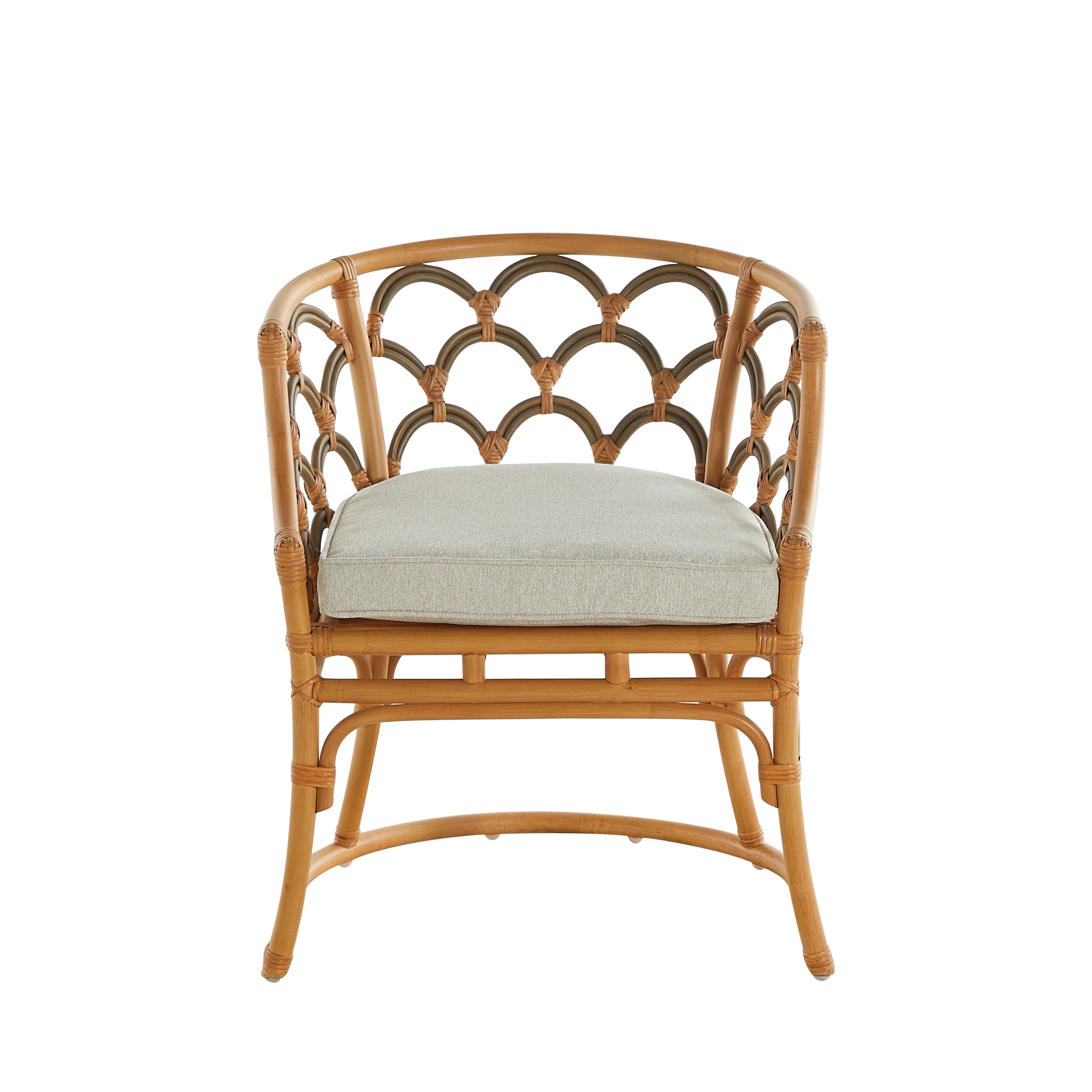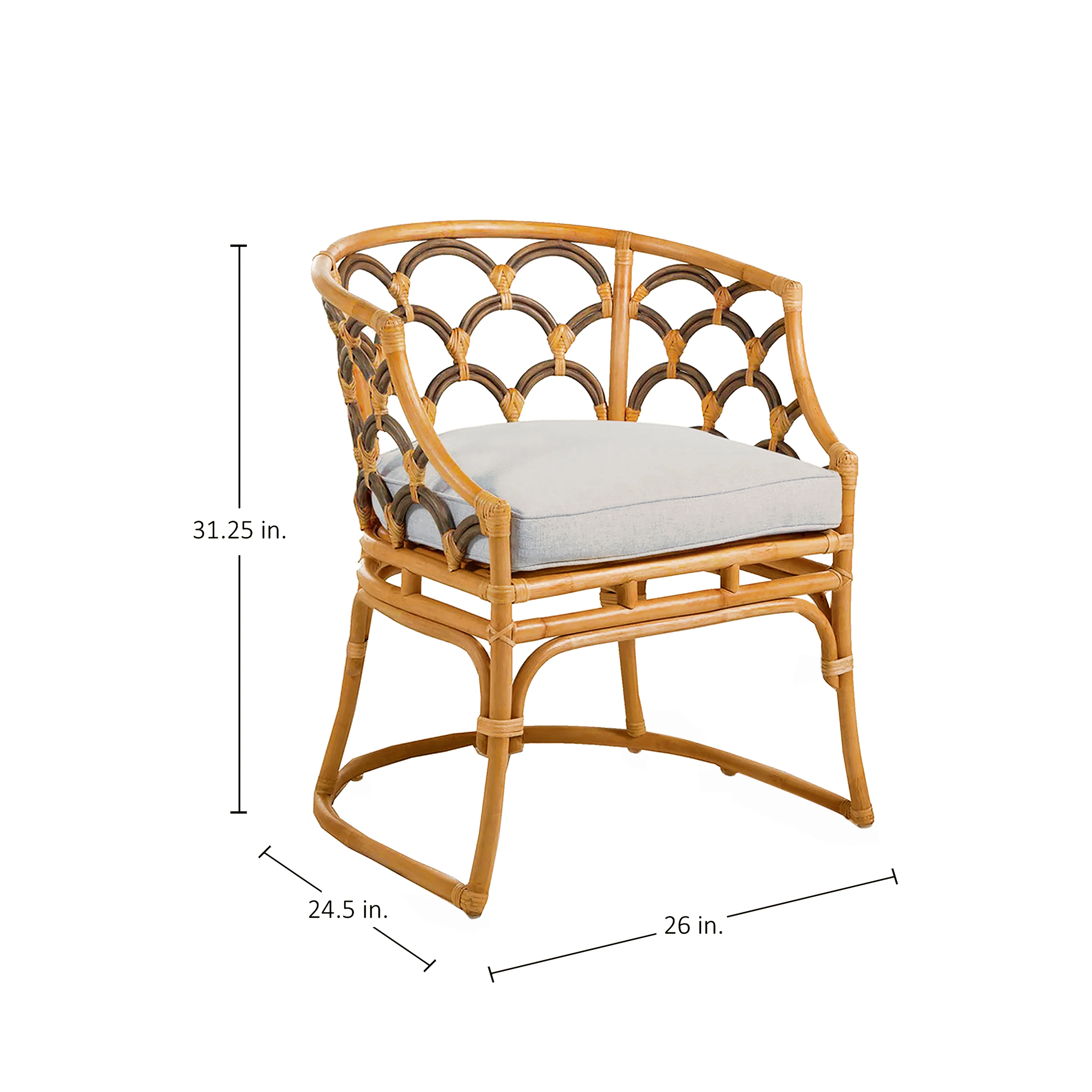 - Barrel-back silhouette with playful scalloped detailing adds airy elegance.