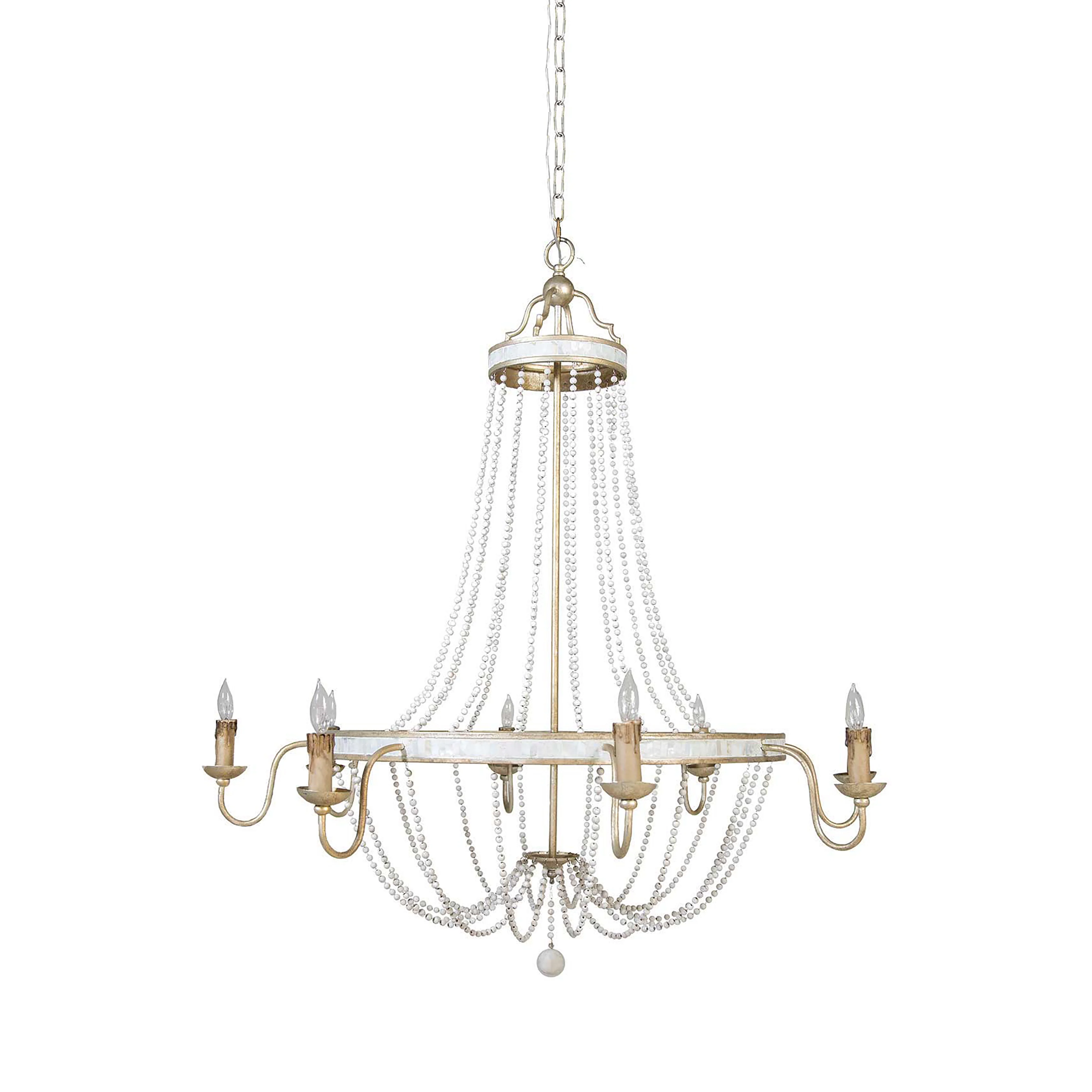 - Finished in champagne silver and adorned with natural mother of pearl inlay for a luxurious coastal-inspired statement