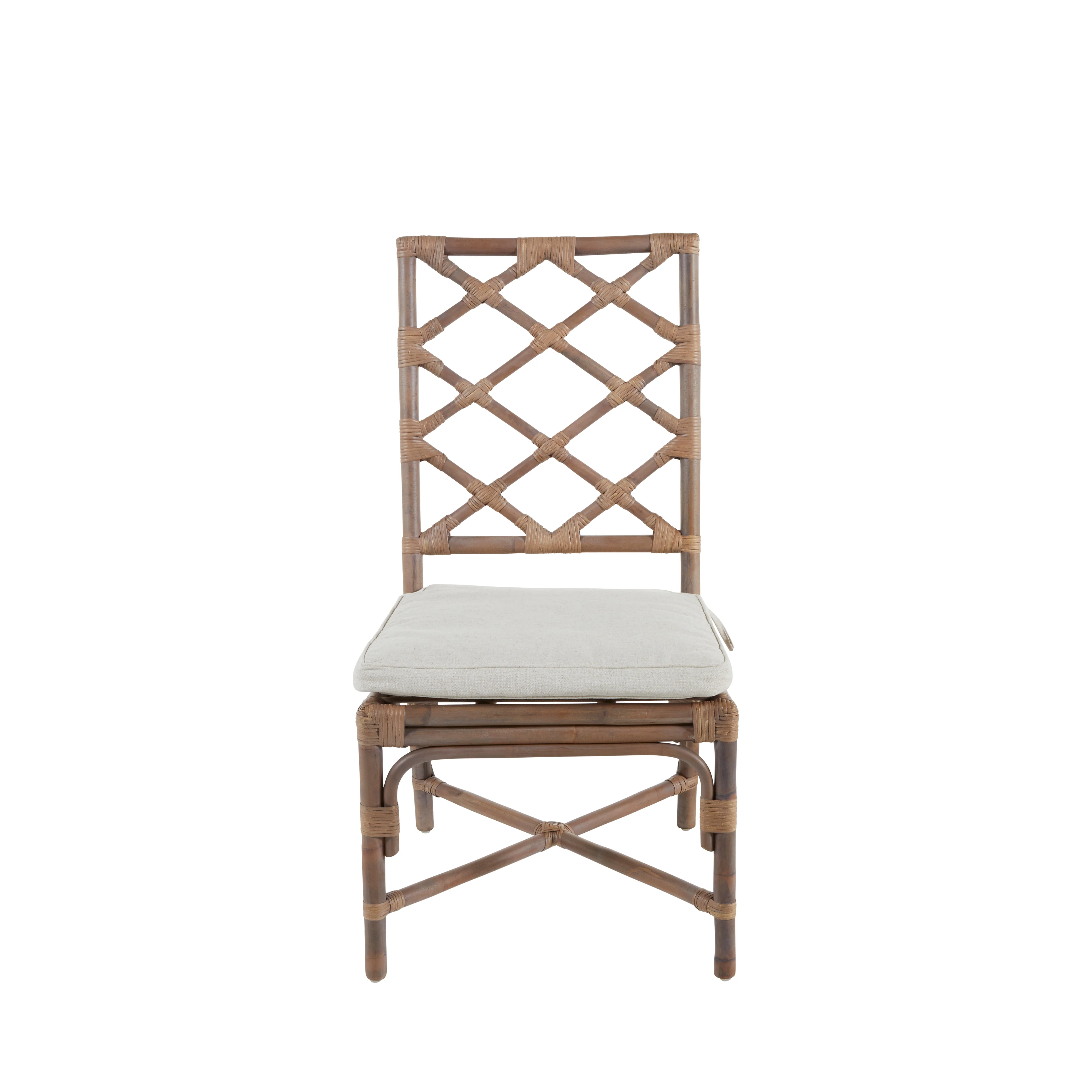 - Lattice back design with diamond-shaped crisscross rods provides structural support and artisanal detail