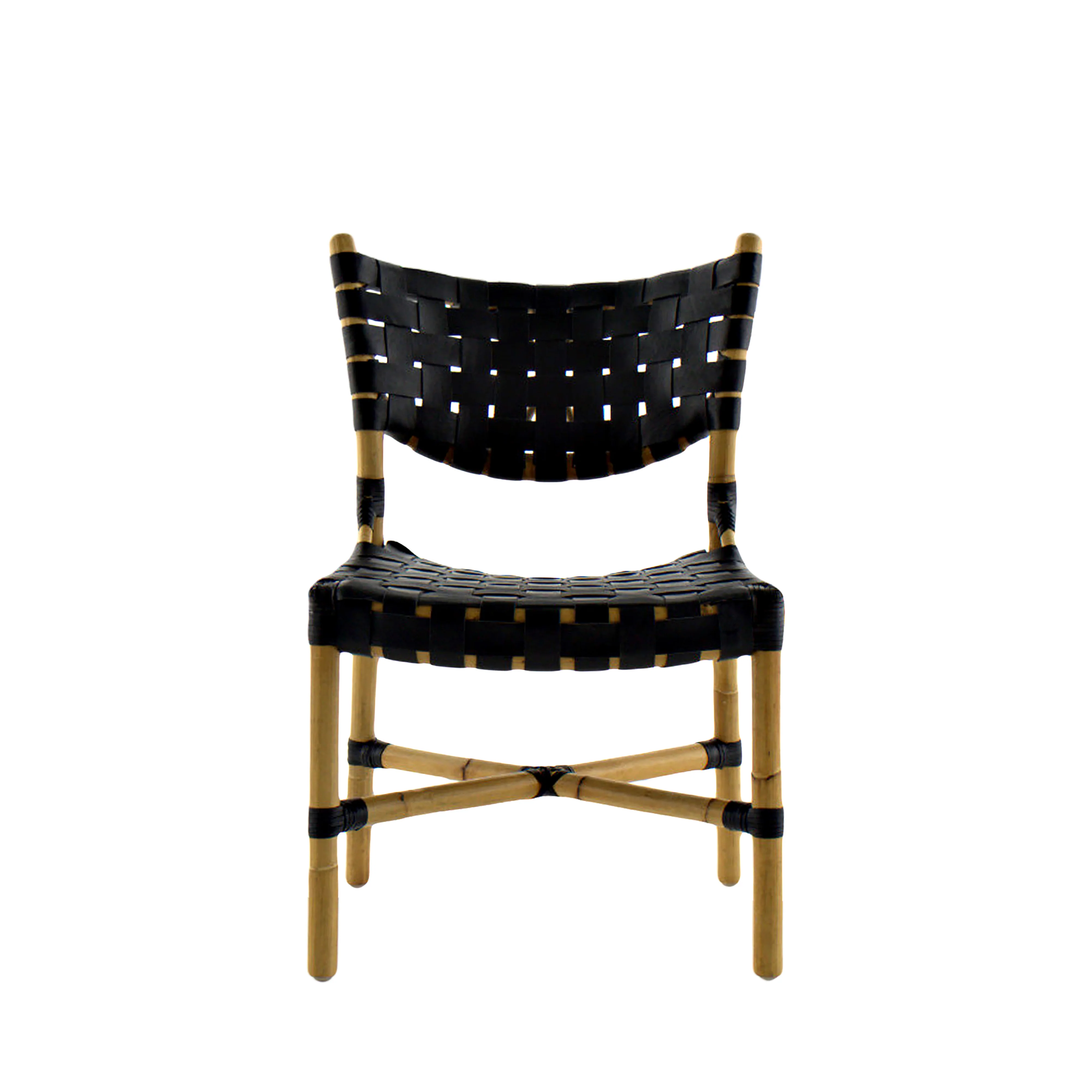- Handwoven black leather straps and natural rattan for a richly textured and artisanal look