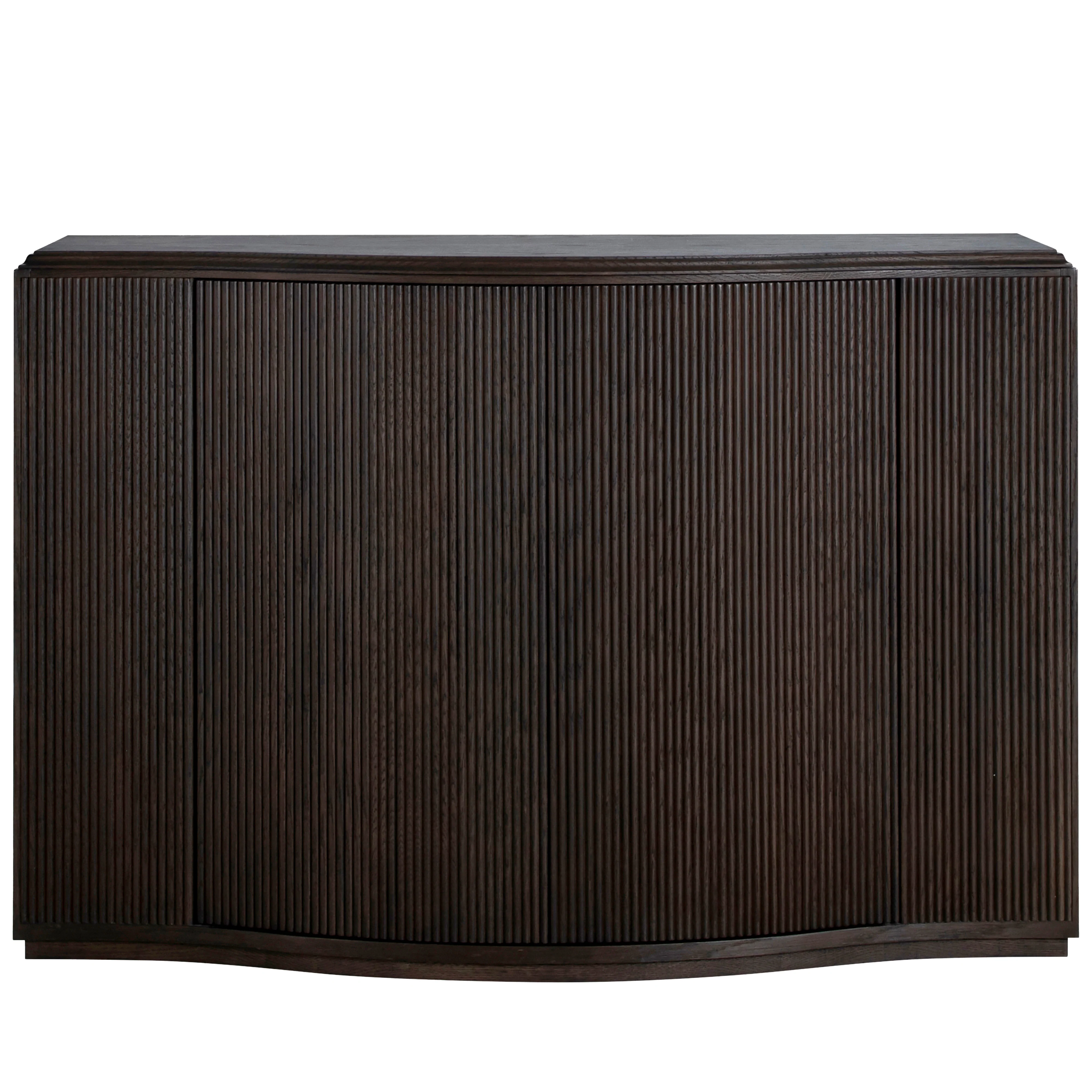- Curved front profile paired with vertical ribbed detailing creates visual depth and sculptural elegance